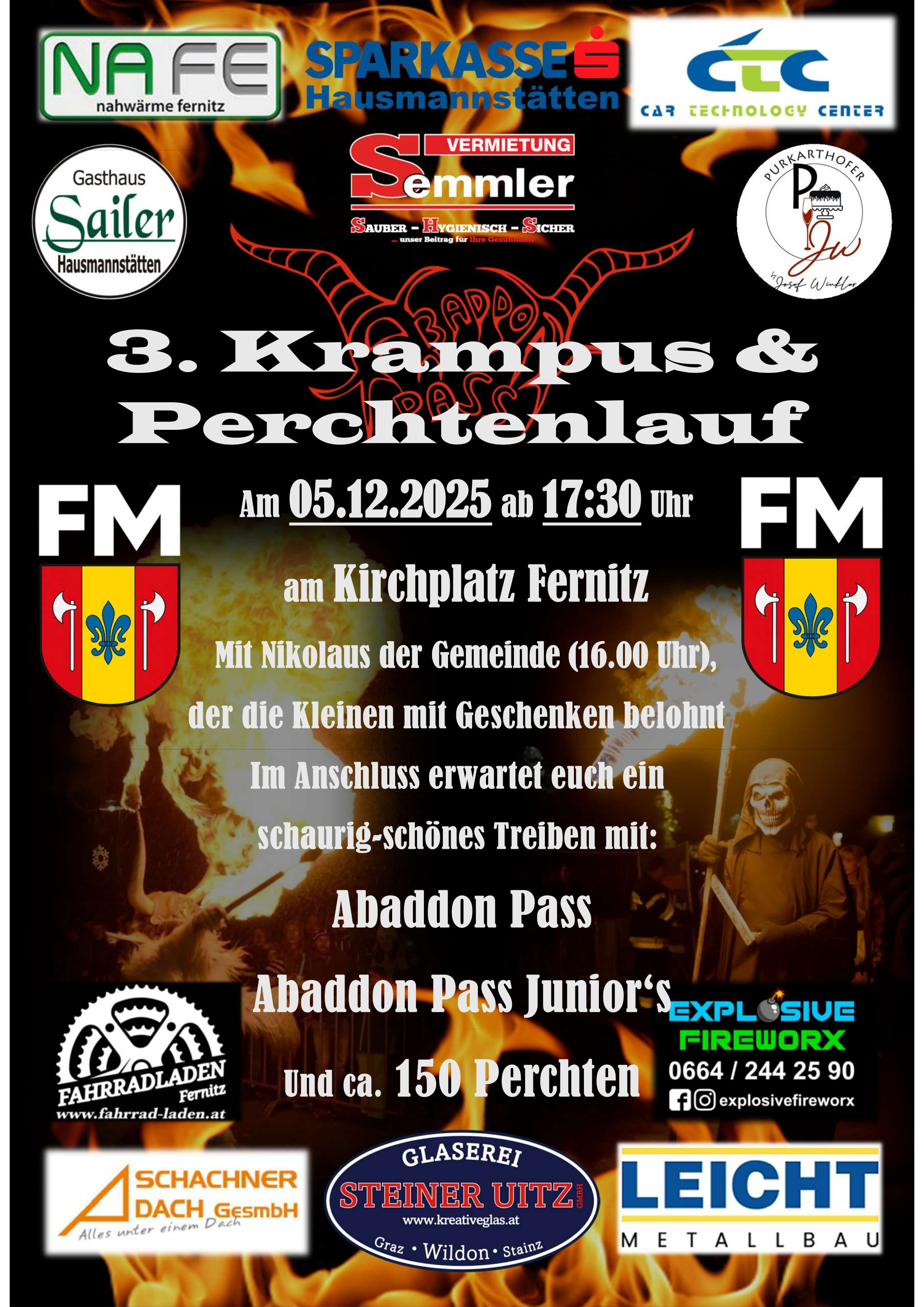 Im Anschluss erwartet euch ein schaurig-schönes Treiben mit: Abaddon Pass Abaddon Pass Junior`s und ca. 150 Perchten
