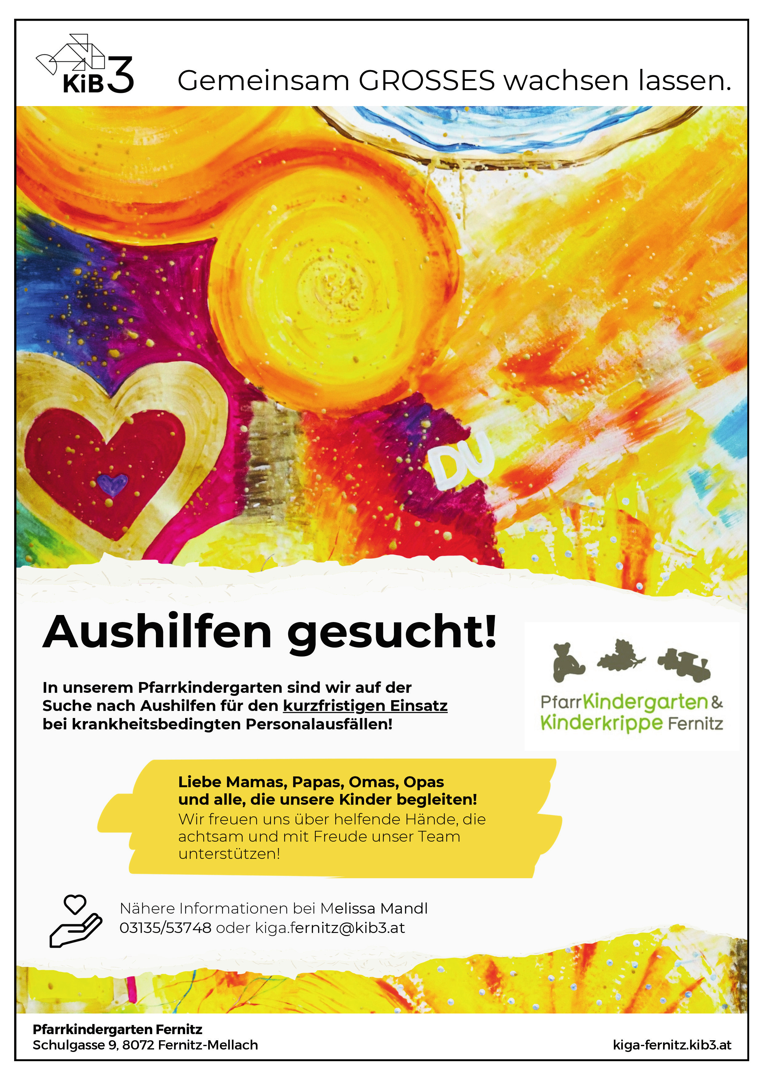 Der Pfarrkindergarten Fernitz ist auf der Suche nach Aushilfen für kurzfristige Einsätze bei Krankheitsbedingten Personalausfällen.