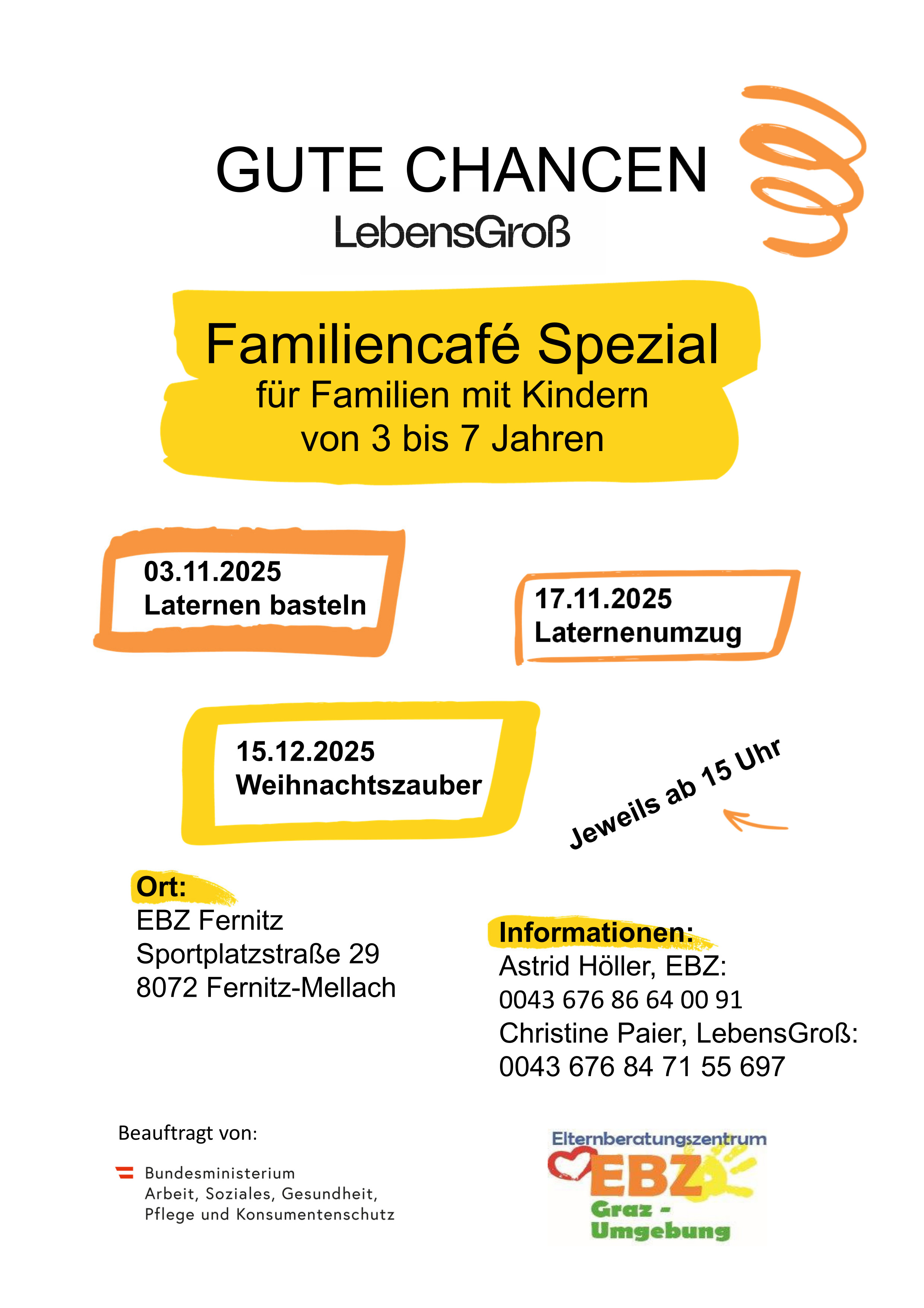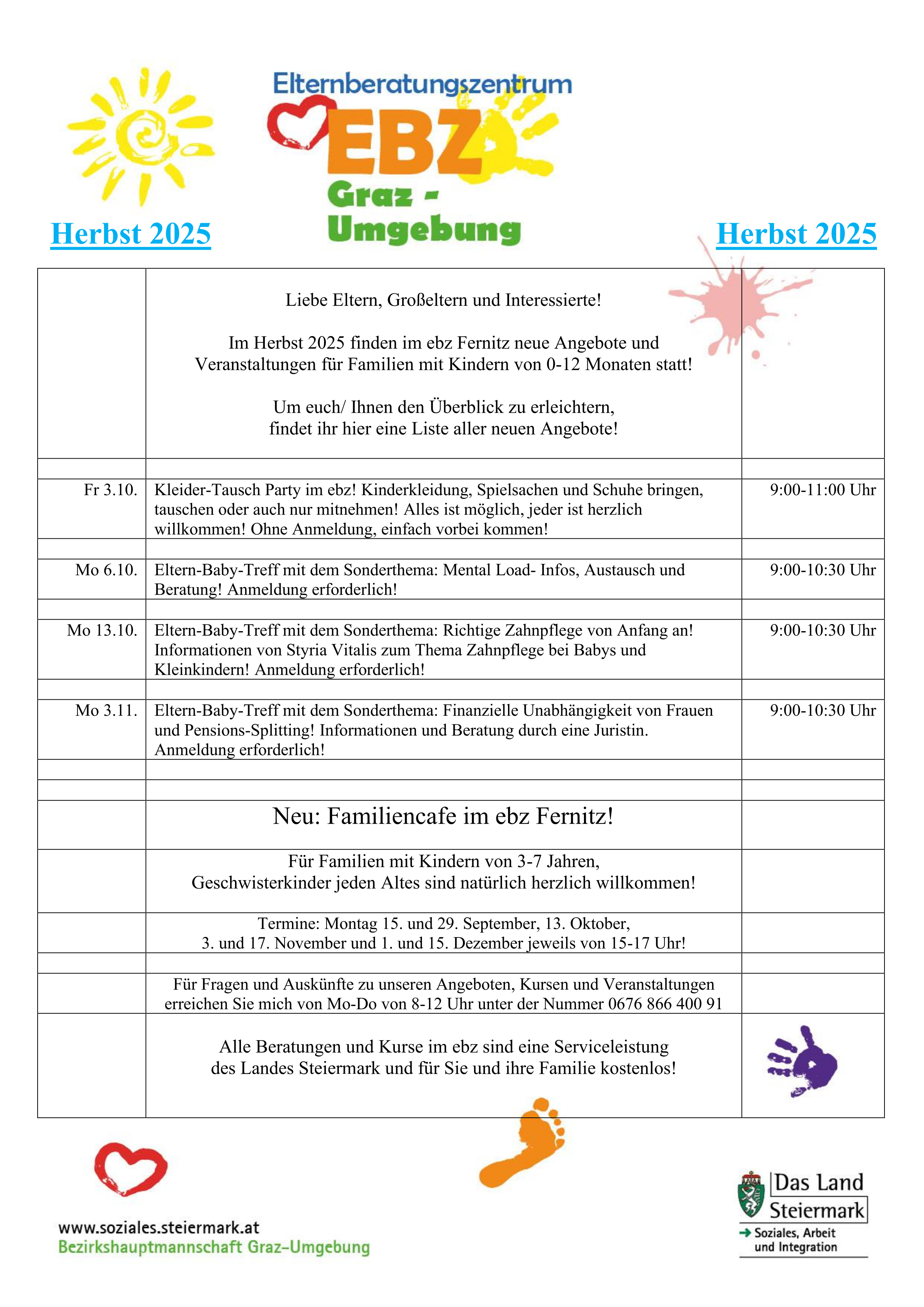 Die Zielgruppe sind (werdende) Mütter und Eltern mit Kindern bis zum Alter von 3 Jahren mit dem Wunsch nach Beratung und Informationen zu Fragen betreffend die Entwicklung, Ernährung, Pflege, Erziehung, Förderung des Kindes, Trennung, Obsorge, Besuchsrecht, Adoption, Pflegeeltern, Helfersysteme und mit dem Bedürfnis nach sozialen Kontakten, Erfahrungsaustausch und Reflexion.