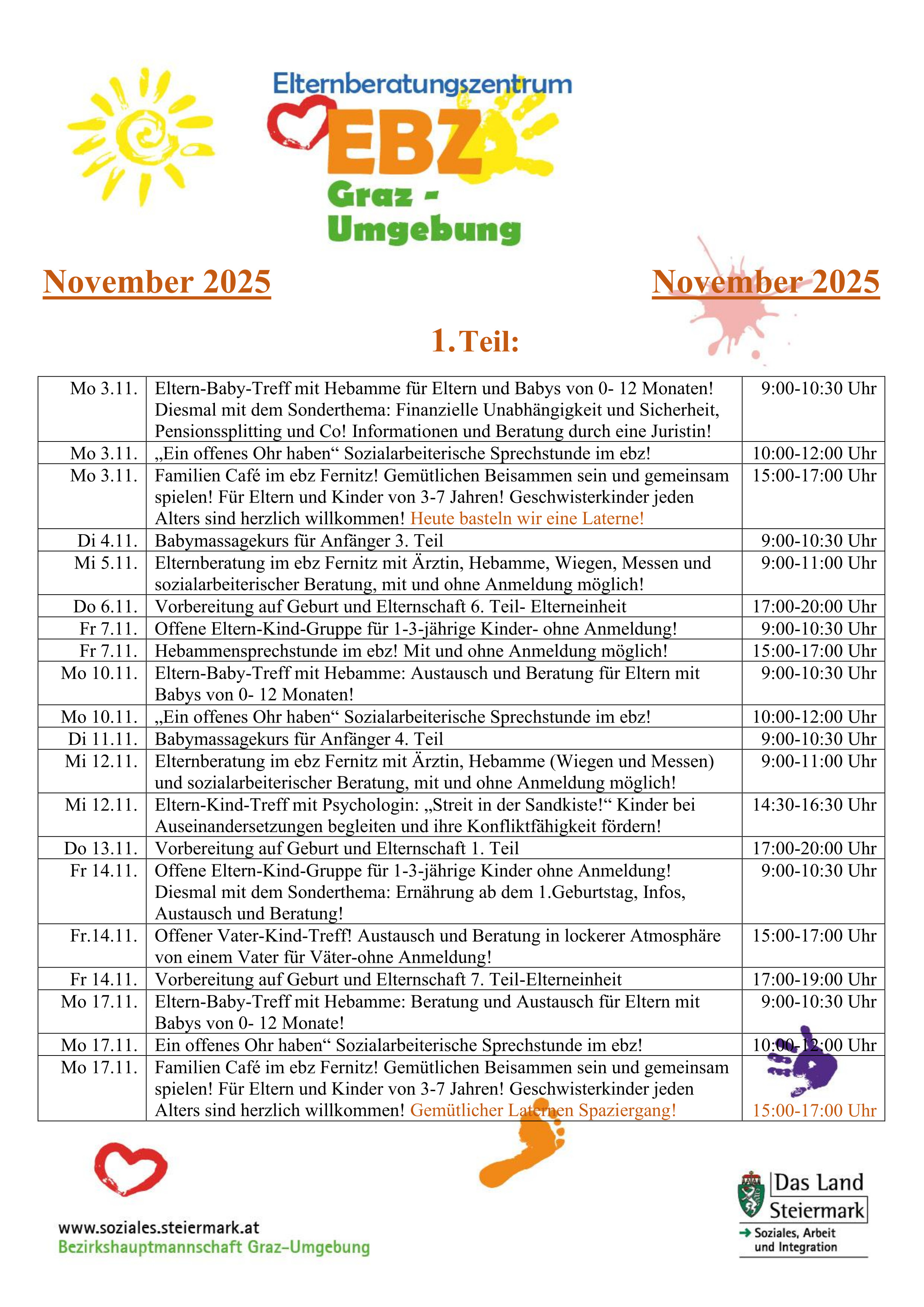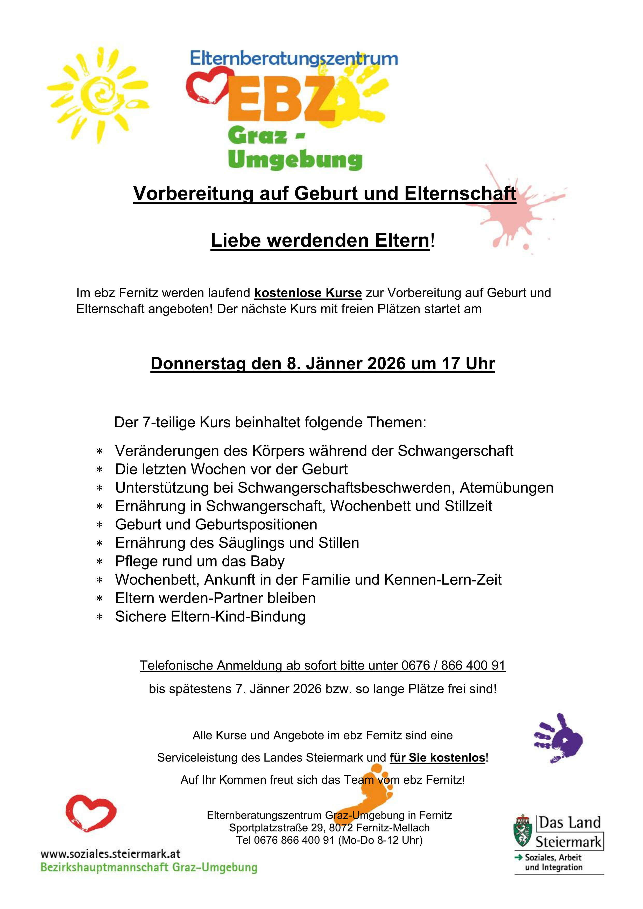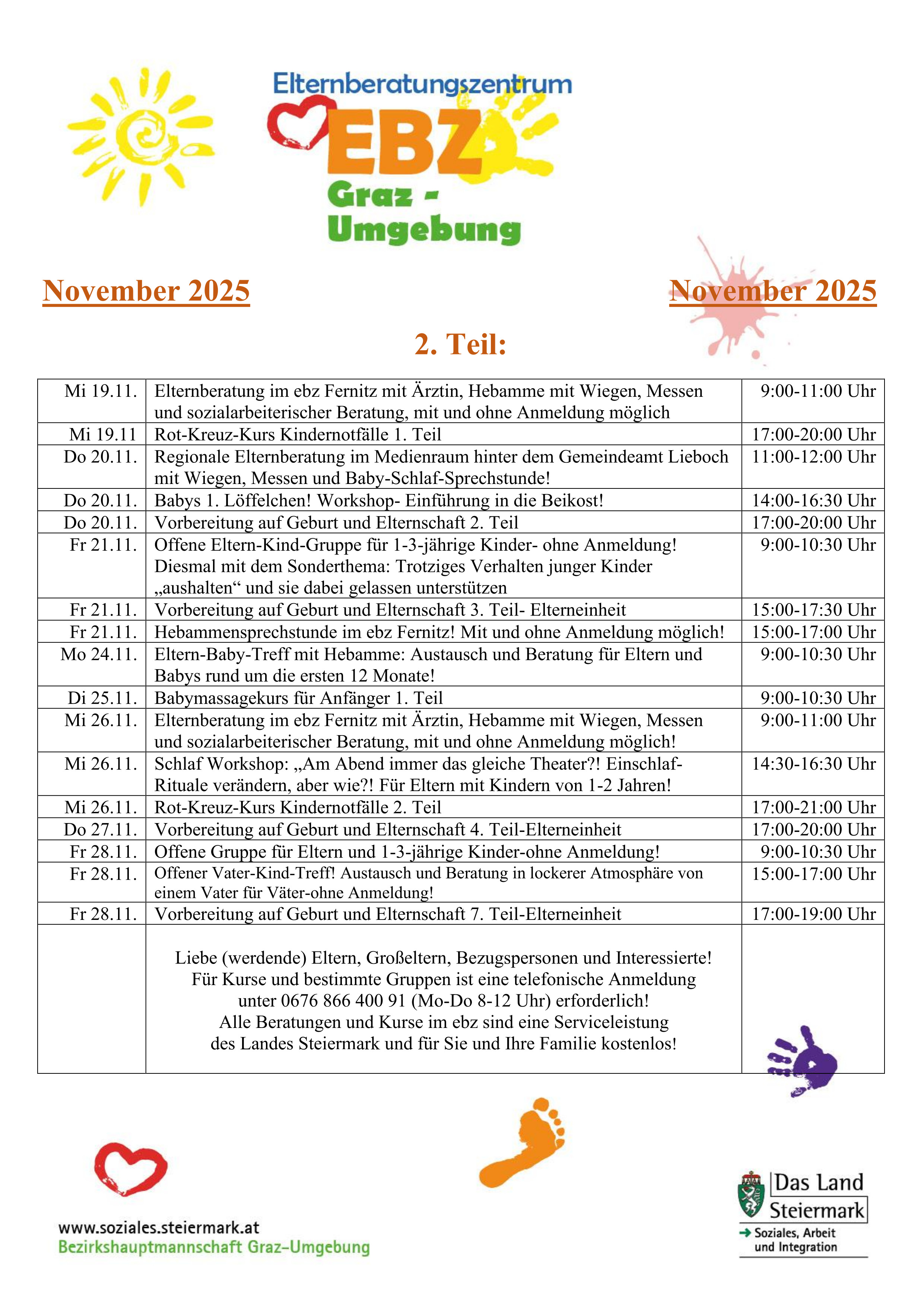 Elternbegegnung – Elterninformation – Elternberatung – Elternbegleitung – Förderung der kindlichen Entwicklung – Prophylaxe rund um die Geburt