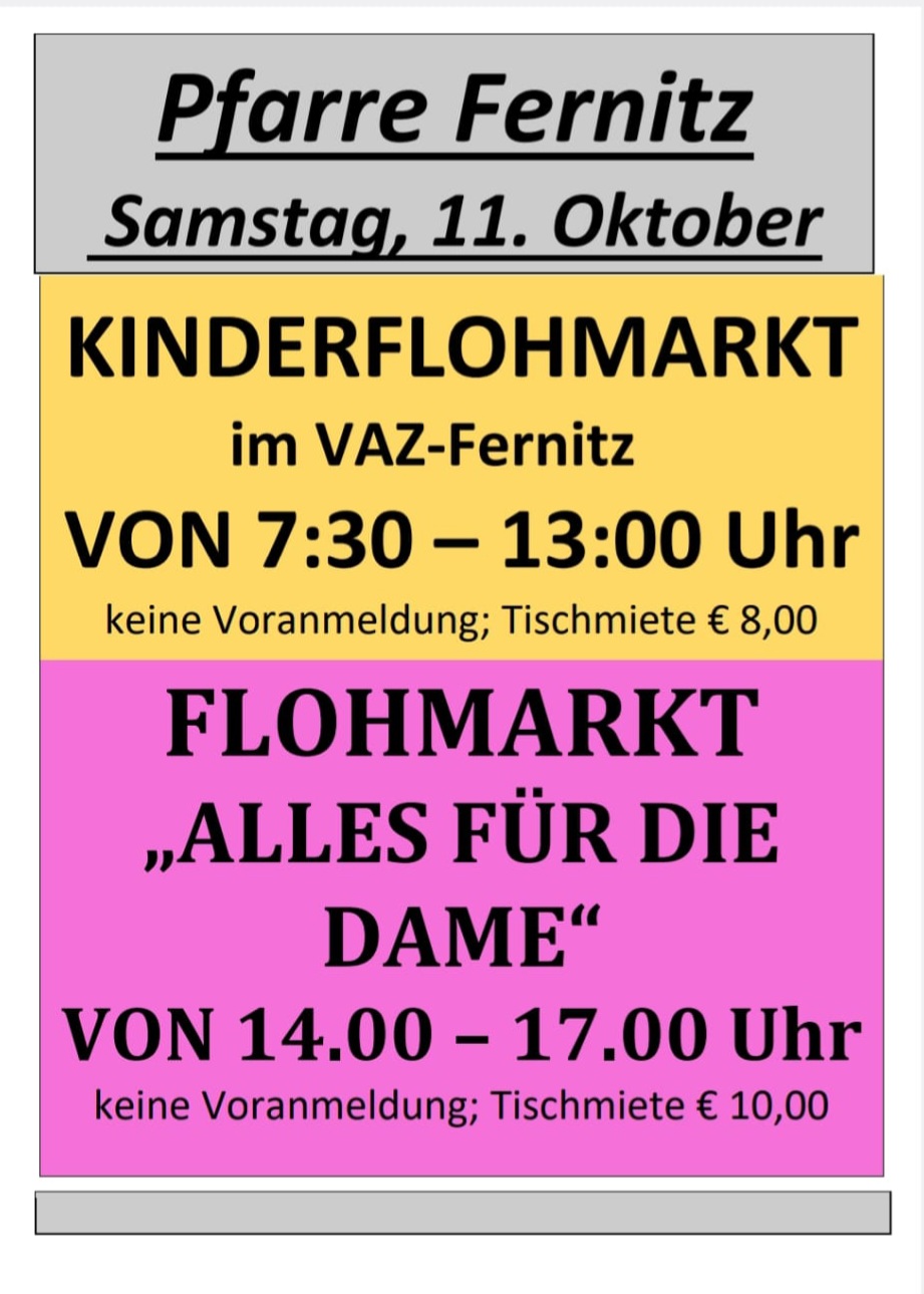 keine Voranmeldung Tischmiete €8,- Pfarre Fernitz
