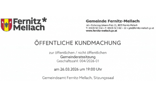 ÖFFENTLICHE KUNDMACHUNG zur öffentlichen / nicht öffentlichen Gemeinderatssitzung am 26.03.2026